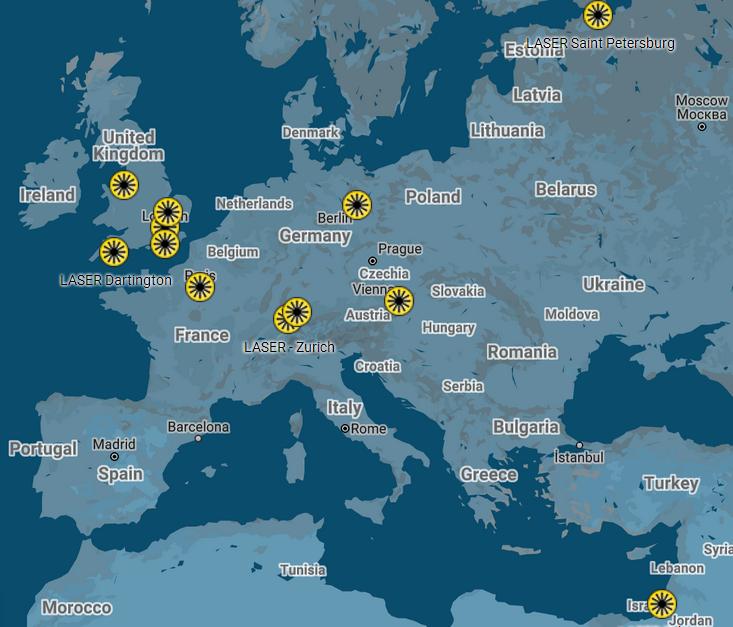 As of 2021, LASER series are held in Washington D.C. (chaired by JD Talasek at the National Academy of Sciences), Los Angeles, CA (chaired by Victoria Vesna at UCLA), Santa Cruz, CA (formerly chaired by John Weber at UCSC), Davis (chaired by Jiayi Young, at UC Davis), London (chaired by Heather Barnett at University of the Arts London), Austin, TX (chaired by Sally Weber at Umlauf), North Texas (chaired by Ruth West at University of North Texas), Kansas (chaired by Carlos Castellanos at KSU), Zurich, Switzerland (chaired by Jill Scott and Boris Magrini, at the University of Applied Science), Paris, France (chaired by Annick Bureaud, at the University of Applied Science), Toronto, Canada (co-chaired by Nina Czegledy and Roberta Buiani at ArtSci Salon), New York City (chaired by Ellen Levy and Patricia Olynyk), Tacoma, WA (chaired by Siddarth Ramakrishnan at University of Puget Sound), Montreal, Canada (chaired by Nina Czegledy and Gisele Trudel at Hexagram), Augusta, GA (chaired by Scott Thorpe at University of Augusta), Irvine, CA (chaired by David Familian and Caitlin Moore at the Bealle Center at UC Irvine), Edmonton in Canada (chaired by Marilene Oliver and Pamela Brett-MacLean at the University of Alberta), San Jose (chaired by Craig Hobbs at SJSU), New Jersey (chaired by Elizabeth Demaray and Julia Buntaine at Rutgers University), Rio de Janeiro (chaired by Joao Silveira and Tania Araujo-Jorge), Fortaleza, Brazil (chaired by Clarissa Ribeiro), Sao Paulo, Brazil (chaired by Tania Fraga), Tehran (chaired by Marzieh Zare), Houston, TX (chaired by Surpik Angelini at Transart Foundation), Vienna (chaired by Klaus Spiess and Susanne Gahbauer), Buffalo, NY (chaired by Paul Vanouse and Solon Morse at the State University of New York), Hong Kong (chaired by Yun Wah Lam and Mariana Perez Bobadilla), Hong Kong (chaired by Lisa Park SoYoung and Alvaro Cassinelli), New Brunswick (chaired by Elizabeth Demaray), Tel Aviv University (chaired by Michael Chodakiewitz), Boston (chaired by Alexandra Mueller-Crepon and Julia Buntaine Hoel at Swissnex), Pasadena (chaired by Stephen Nowlin), North Carolina (chaired by Victoria Szabo at Duke Univ), Santa Barbara (chaired by Jane Chang at UCSB), New Zealand (chaired by Janine Randerson), Mexico City (chaired by Luz Cardona Sanchez), Arizona State University (chaired by Pamela Winfrey), Dartington College in England (chaired by Alan Bolden), Aalto University in Finland (chaired by Laura Beloff), in Moscow (chaired by Anastasiia Sibrenkova), University of Queensland (chaired by Elizabeth Stephens), University of Art and Design Linz (chaired by Christa Sommerer and others), Cyland/St Petersburg/ Moscow, Helsinki/Espoo (chaired by Laura Beloff and others), Brussels (chaired by Alexandra Dementieva), Lisbon (chaired by Luis Graca and Marta de Menezes), Tel Aviv (chaired by Tal Yizrael), Valencia (chaired by Moises Maas Carbonell and Guillermo Muoz Matutano), Lisbon (chaired by Marta de Menezes and Luis Garcia), Liverpool (chaired by Mark Roughley), Denmark (chaired by Morten Sondergaard), Oxford Univ (chaired by Sonia Contera), Shanghai (chaired by Cissy Yiwen Sun and Langyuan Ma at Swissnex), Amsterdam (chaired by Lucas Evers), Jerusalem (chaired by Galina Bleikh and Daria Kesler), Joint Research Centre, European Commission in Italy (chaired by Caterina Benincasa), ... See the alphabetical list updated to 2019.